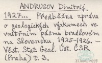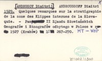 ANDROUSSOFF Dimitri [ANDRUSOV Dimitrij] 1929 Quelques remarques sur la stratigraphie de la zone des Klippes internes de la Slovaquie.