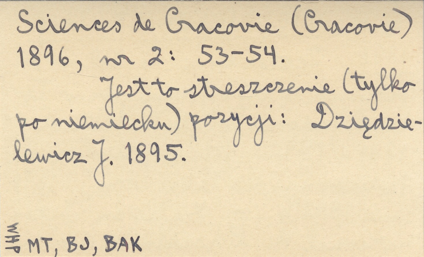 Bulletin International de l'Académie des Sciences de Cracovie (Cracovie) , 1896, nr 2: 53-54. Jest to streszczenie (tylko po niemiecku) pozycji: DZIĘDZIELEWICZ J. 1895.