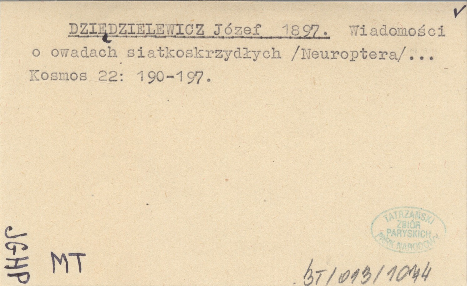 DZIĘDZIELEWICZ Józef 1897 Wiadomości o owadach siatkoskrzydłych (Neuroptera) ...