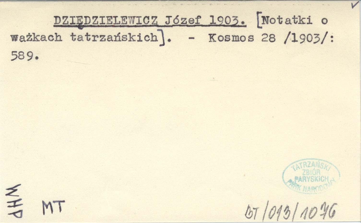 DZIĘDZIELEWICZ Józef 1903 [Notatki o ważkach tatrzańskich.]