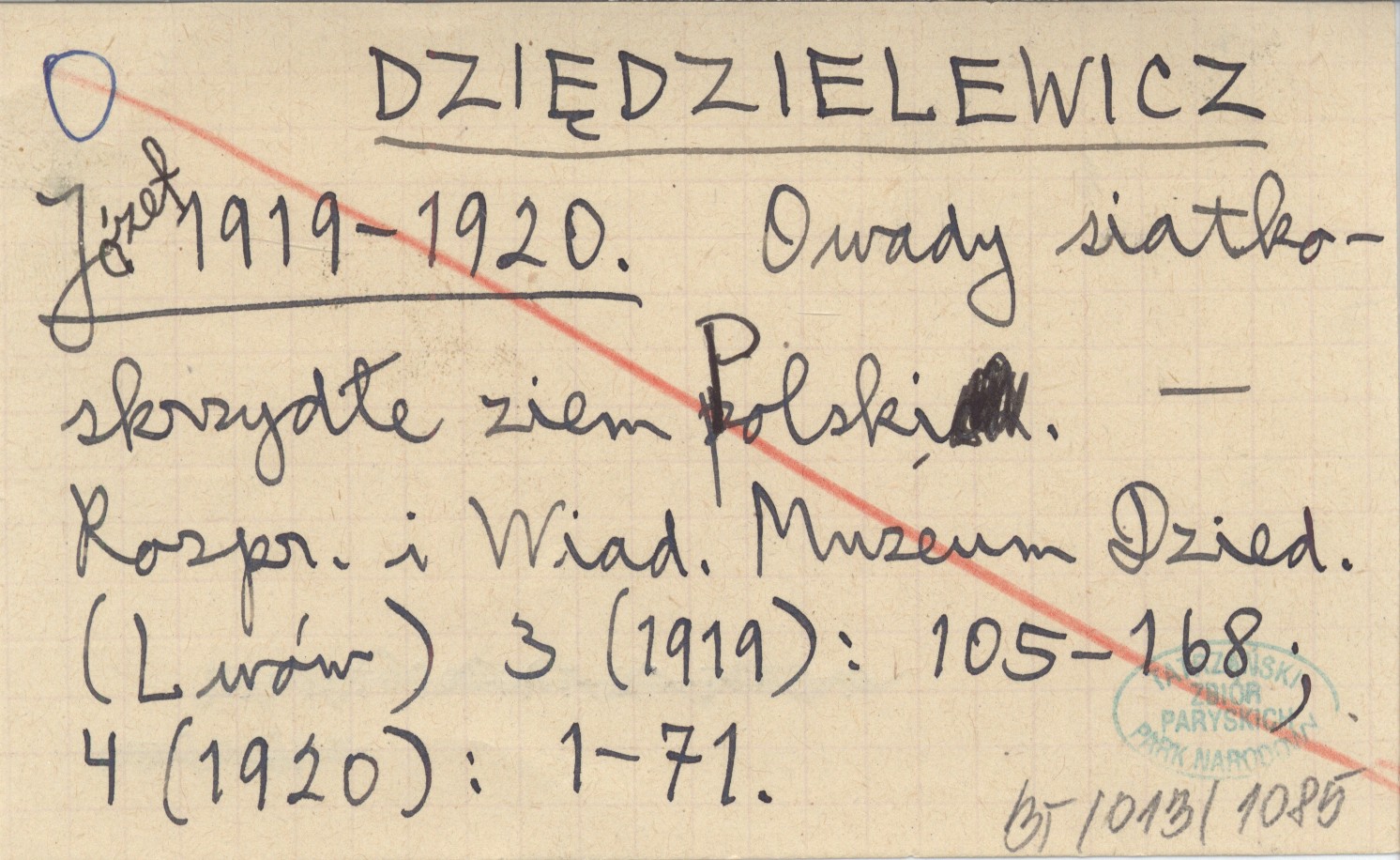 DZIĘDZIELEWICZ Józef 1919-1920 Owady siatkoskrzydłe ziem Polski.