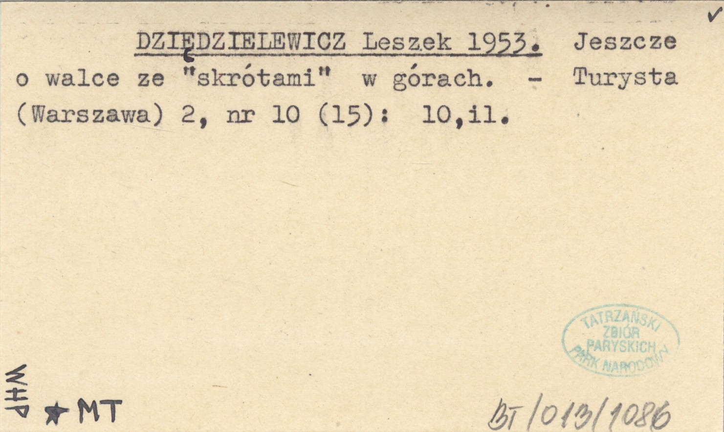 DZIĘDZIELEWICZ Leszek 1953 Jeszcze o walce ze "skrótami" w górach.