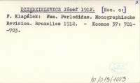 DZIĘDZIELEWICZ Józef 1912 [Rec. o:] F. Klapálek: Fam. Perlodidae. Monographische Revision. Bruxelles 1912.