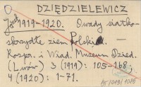 DZIĘDZIELEWICZ Józef 1919-1920 Owady siatkoskrzydłe ziem Polski.
