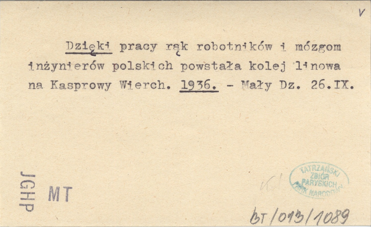 Dzięki pracy rąk robotników i mózgom inżynierów polskich powstała kolej linowa na Kasprowy Wierch. 1936