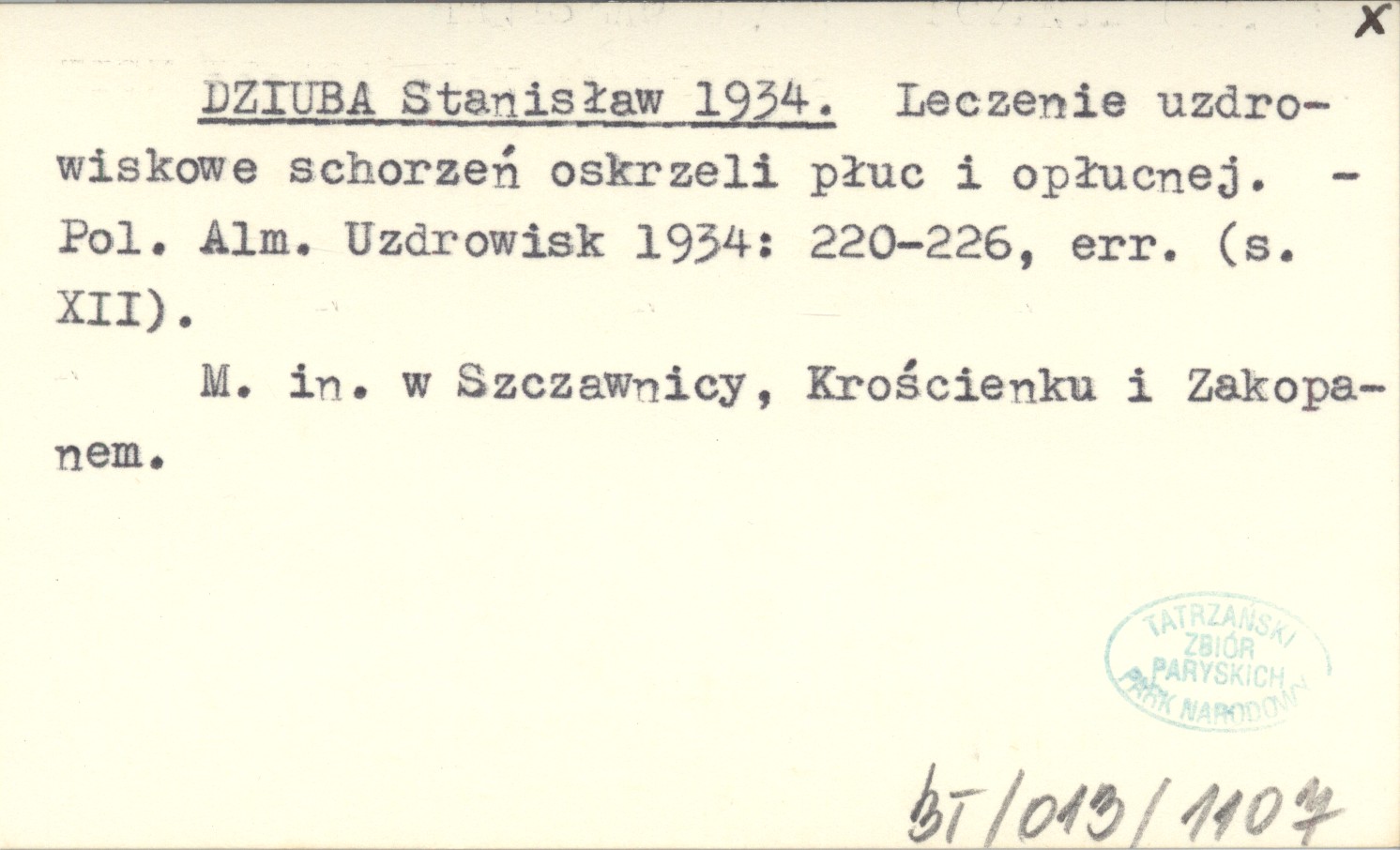 DZIUBA Stanisław 1934 Leczenie uzdrowiskowe schorzeń oskrzeli płuc i opłucnej.