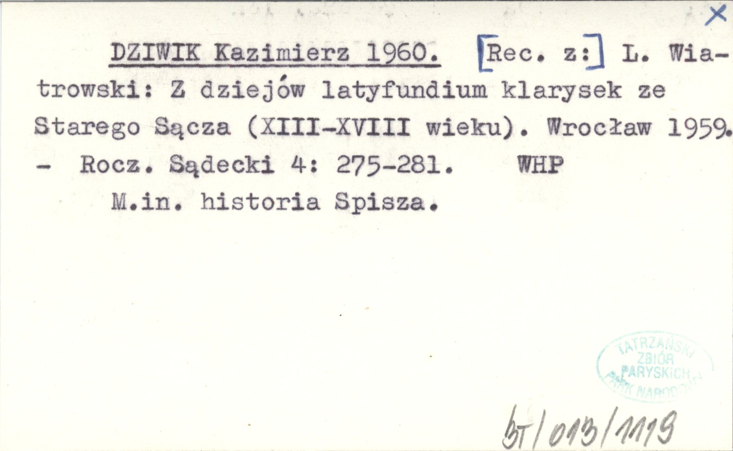 Rocznik Sądecki, 4: 275-281. M. in. historia Spisza.