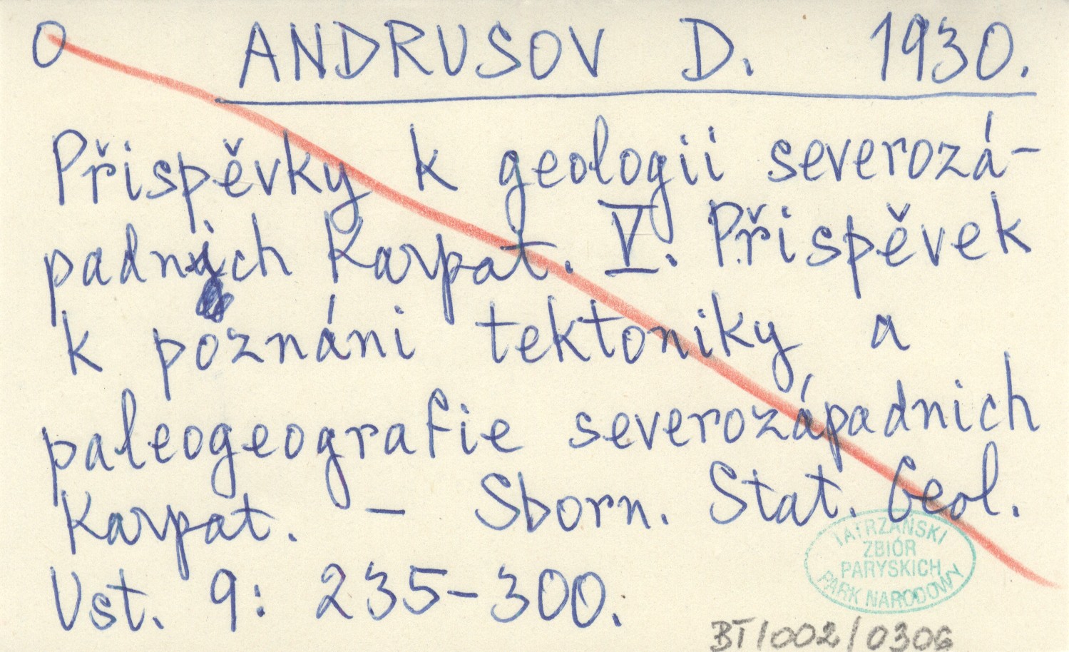 ANDRUSOV D. 1930 Přispěvky k geologii severozápadnich Karpat. V. Přispěvek k poznáni tektoniky a paleogeografie severozápadnich Karpat.