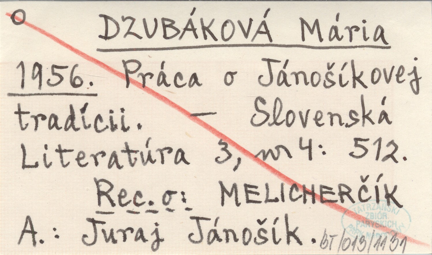 DZUBÁKOVÁ Mária 1956 Práca o Jánoąíkovej tradícii.