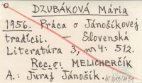 DZUBÁKOVÁ Mária 1956 Práca o Jánošíkovej tradícii.