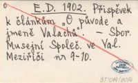 E. D. 1902 Přispěvek k článkům "O původe a jmeně Valachů".