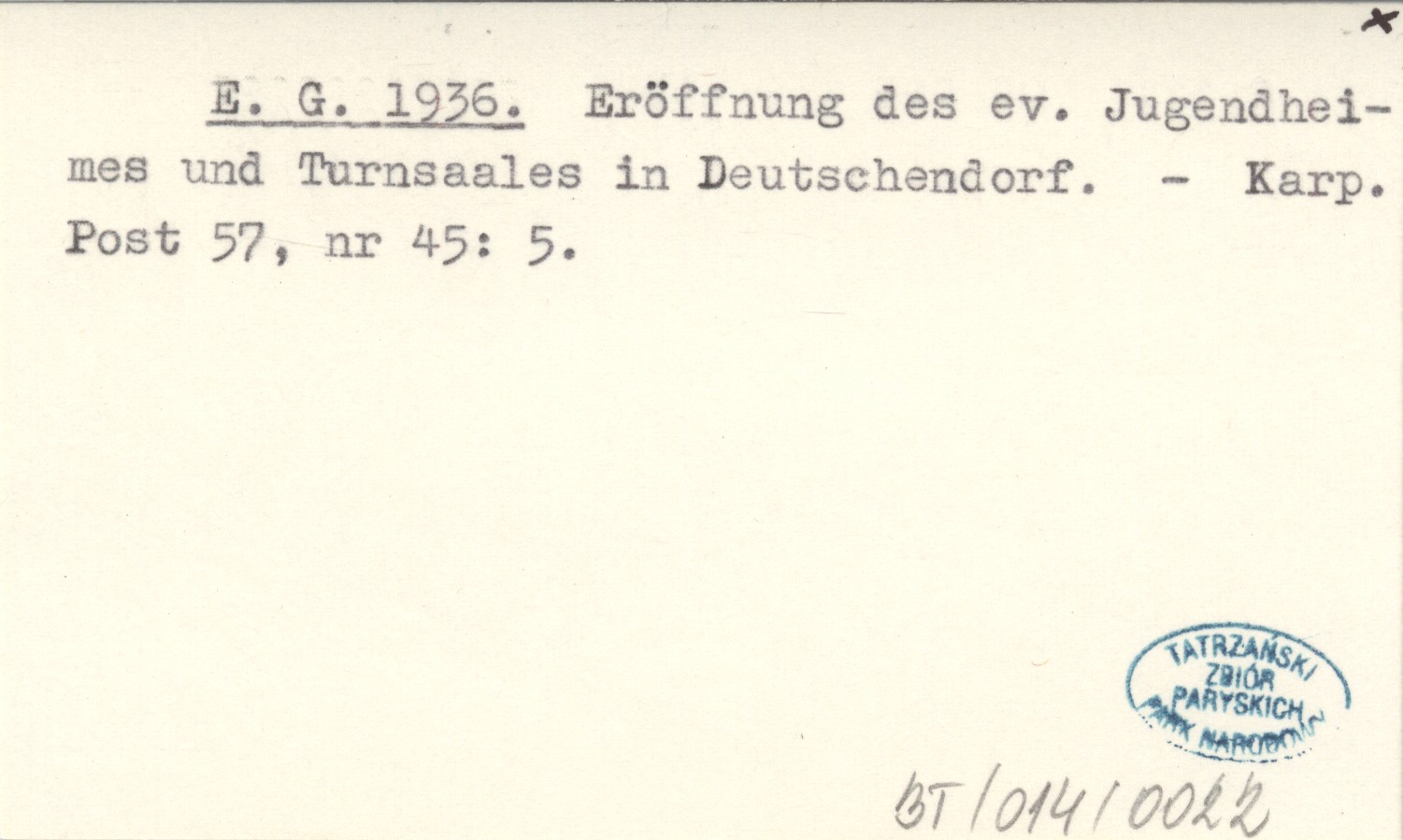 E. G. 1936 Eröffnung des ev. Jugendheimes und Turnsaales in Deutschendorf.