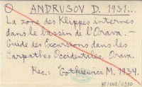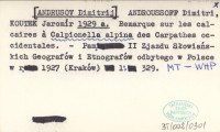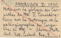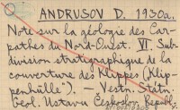 ANDROUSSOFF Dimitri [ANDRUSOV Dimitrij] KOUTEK, Jaromír. ; 1929 a Remarque sue les calcaires á Calpionella alpina des Carpathes occidentales.