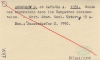 ANDRUSOV D. MATEJKA, A. ; 1931 Guide des excursions dans les Carpathes occidentales.