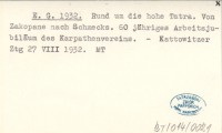 E. G. 1932 Rund um die hohe Tatra. Von Zakopane nach Schmecks. 60 jähriges Arbeitsjubiläum des Karpathenvereins.
