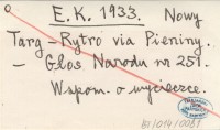 E. K. 1933 Nowy Targ - Rytro via Pieniny.