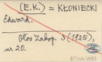 (E. K.) KŁONIECKI Edward Głos Zakopiański 3 (1925), nr 20.