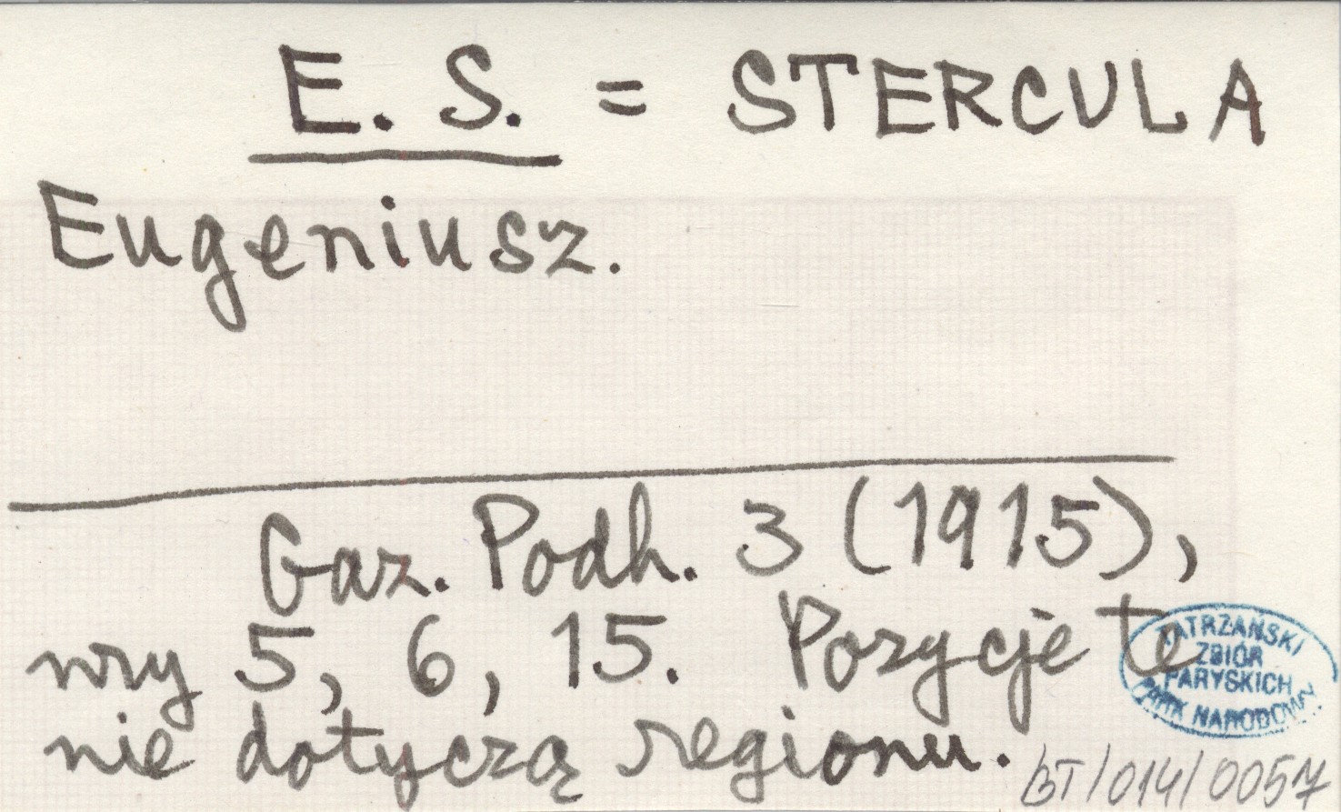 E. S. STERCULA Eugeniusz Gazeta Podhalańska 3 (1915), nr 5, 6, 15. Pozycje te nie dotyczą regionu.
