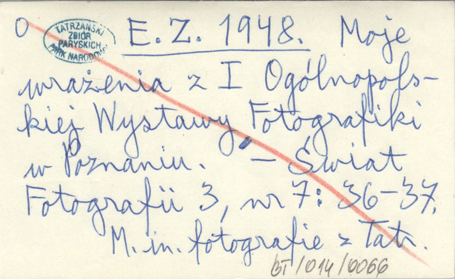 E. Z. 1948 Moje wrażenia z I Ogólnopolskiej Wystawy Fotografiki w Poznaniu.