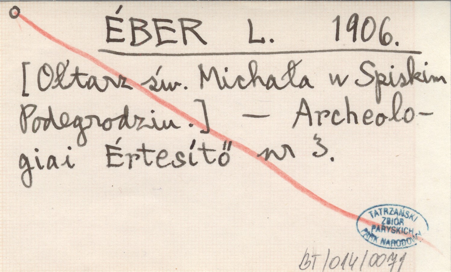 ÉBER L. 1906 [Ołtarz św. Michała w Spiskim Podegrodziu.]