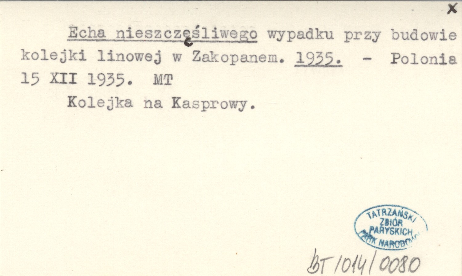 Echa nieszczęśliwego wypadku przy budowie kolejki linowej w Zakopanem. 1935