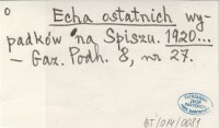 Echa ostatnich wypadków na Spiszu. 1920...
