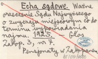 Echa sądowe. Ważne orzeczenie Sądu Najwyższego o zwyczaju miejscowym co do terminu wypowiadania najmu. 1925