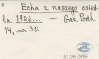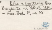 Echa z powitania Pana Prezydenta na Podhalu. 1929...
