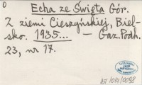 Echa ze Świata Gór. Z ziemi Cieszyńskiej, Bielsko. 1935...