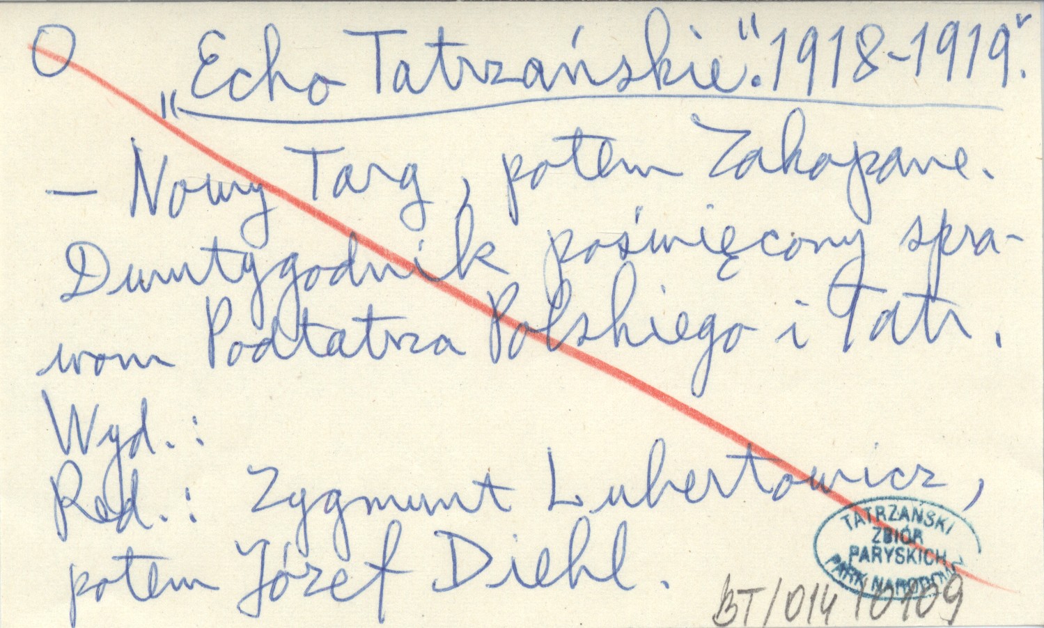Projekt Digitalizacja fiszek z Bibliografią Tatr i Podtatrza Witolda Henryka Paryskiego jest finansowany ze środków Ministra Kultury i Dziedzictwa Narodowego oraz Tatrzańskiego Parku Narodowego.