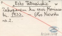 "Echo Tatrzańskie" w Zakopanem ku czci Moniuszki. 1933