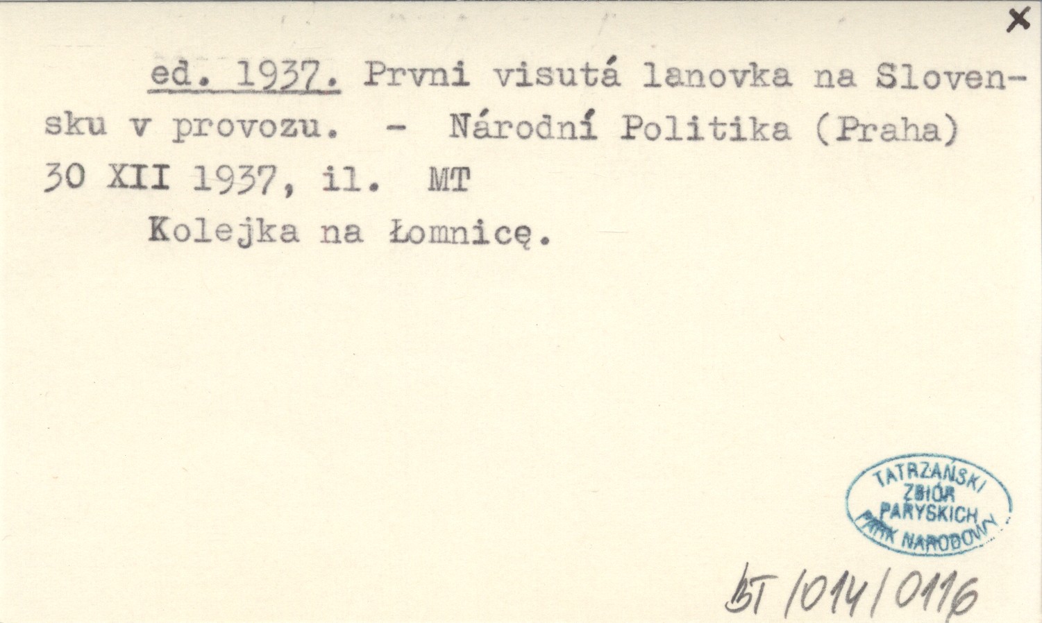 Národní Politika (Praha) , 30 XII 1937, il. Kolejka na Łomnicę.