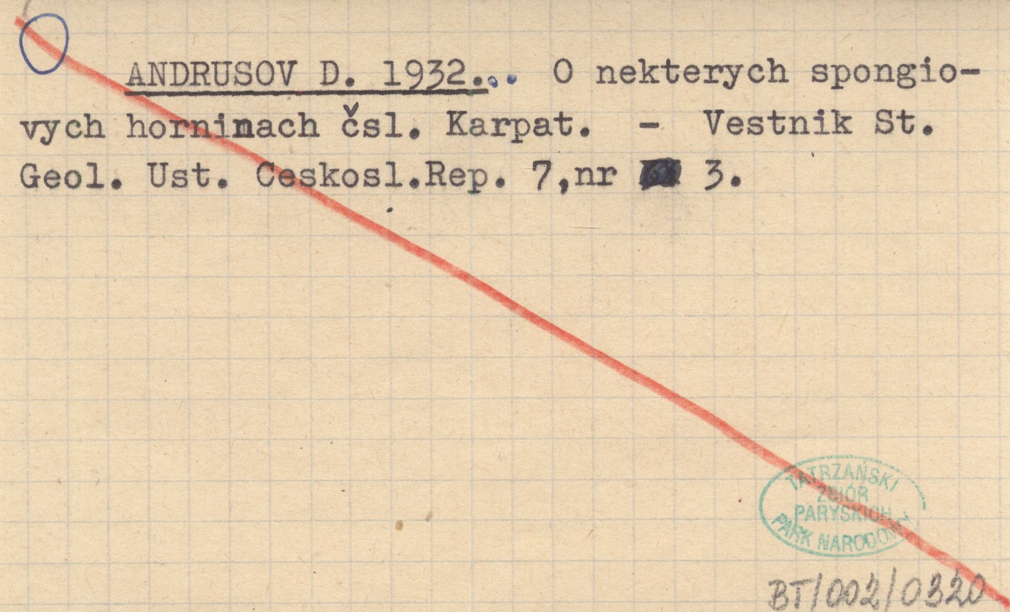 ANDRUSOV D. 1932... O nekterych spongiovych horninach čsl. Karpat.