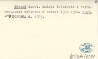 Edward Gorol. Medale lekarskie i farmaceutyczne wykonane w latach 1962-1974. 1975