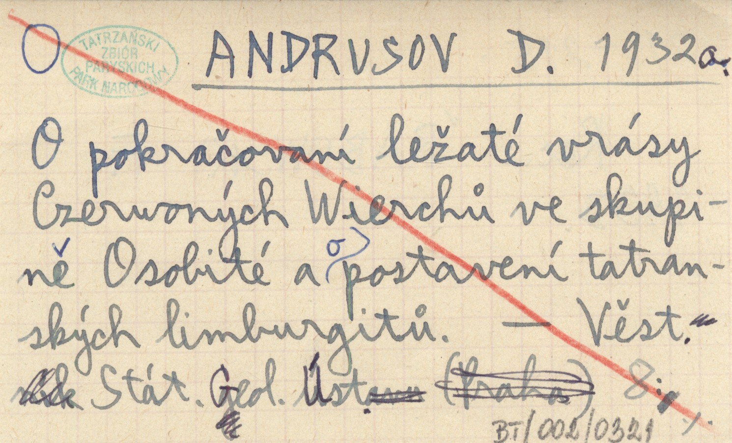 ANDRUSOV D. 1932 a O pokračovaní leľaté vrásy Czerwoných Wierchů ve skupině Osobité a o postavení tatranských limburgitů.