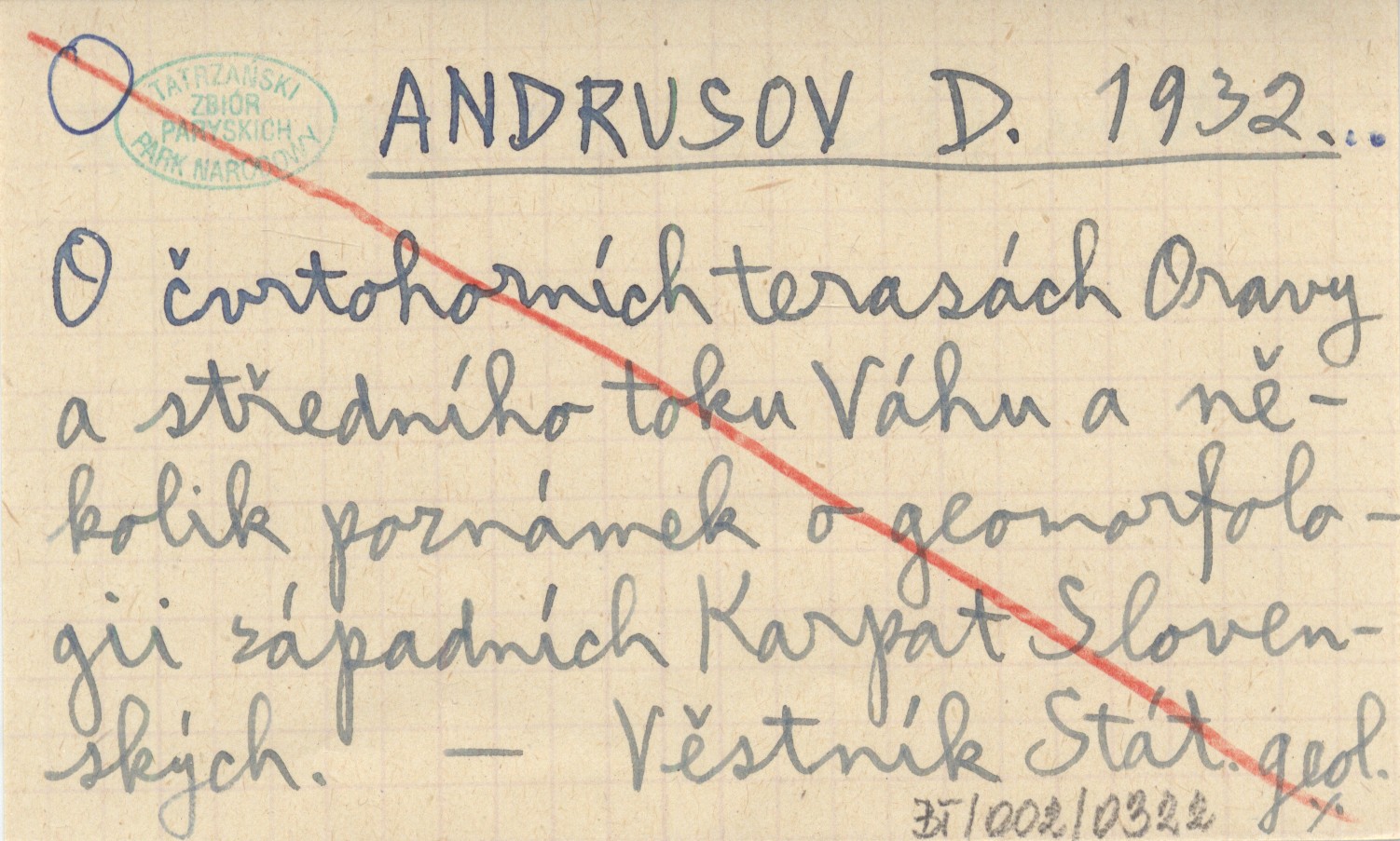 ANDRUSOV D. 1932... O čvrtohorních terasách Oravy a středního toku Váhu a několik poznámek o geomorfologii západních Karpat Slovenských.