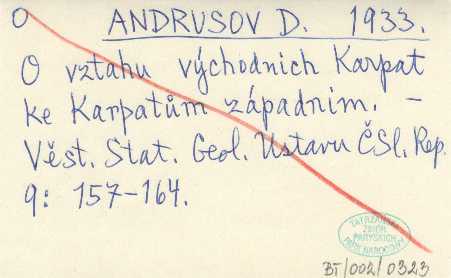 ANDRUSOV D. 1933 O rztahu východnich Karpat ke Karpatům západnim.