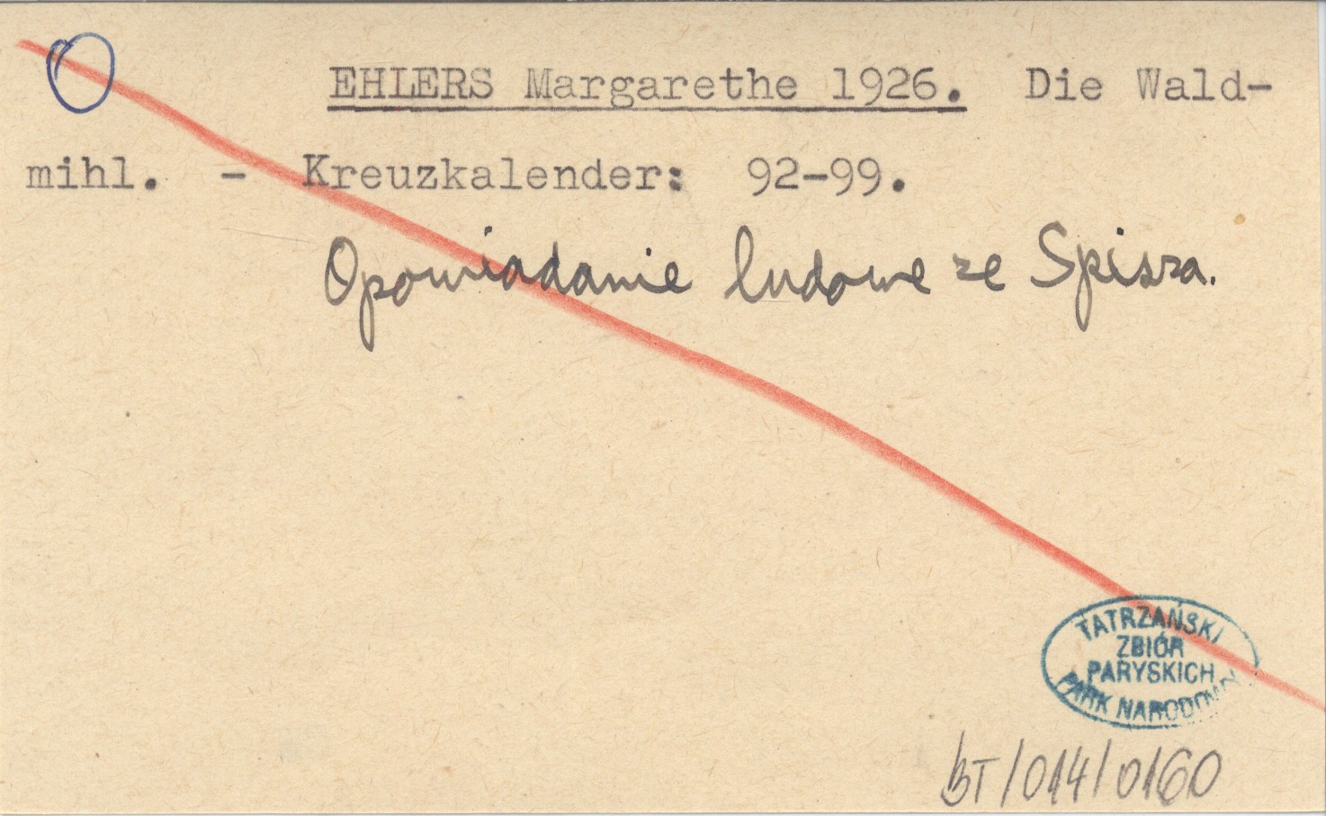 Kreuzkalender, S. 92-99. Opowiadanie ludowe ze Spisza.
