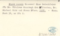 Ehret unsere Grossen! Eine Gedenkfeier für Dr. Nikolaus Szontagh den ältesten, Dr. Michael Guhr und Franz Dénes. 1937