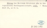 Ehrung des Dichters Friedrich Lám in der ungarischen Goethegesellschaft. 1937