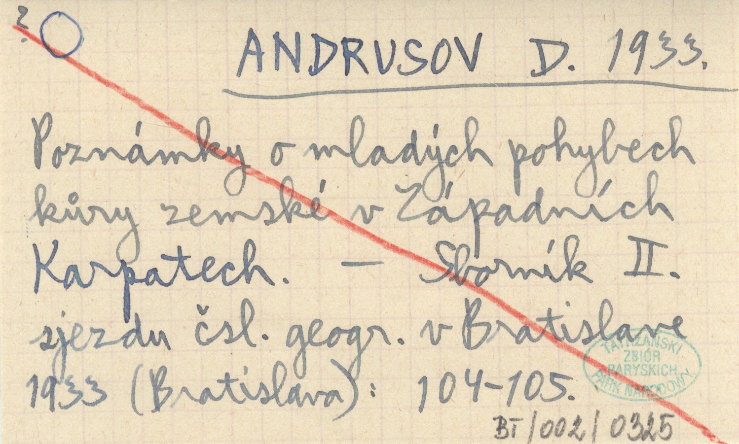 ANDRUSOV D. 1933 Poznámky o mladých pohybech kůry zemské v Západních Karpatech.