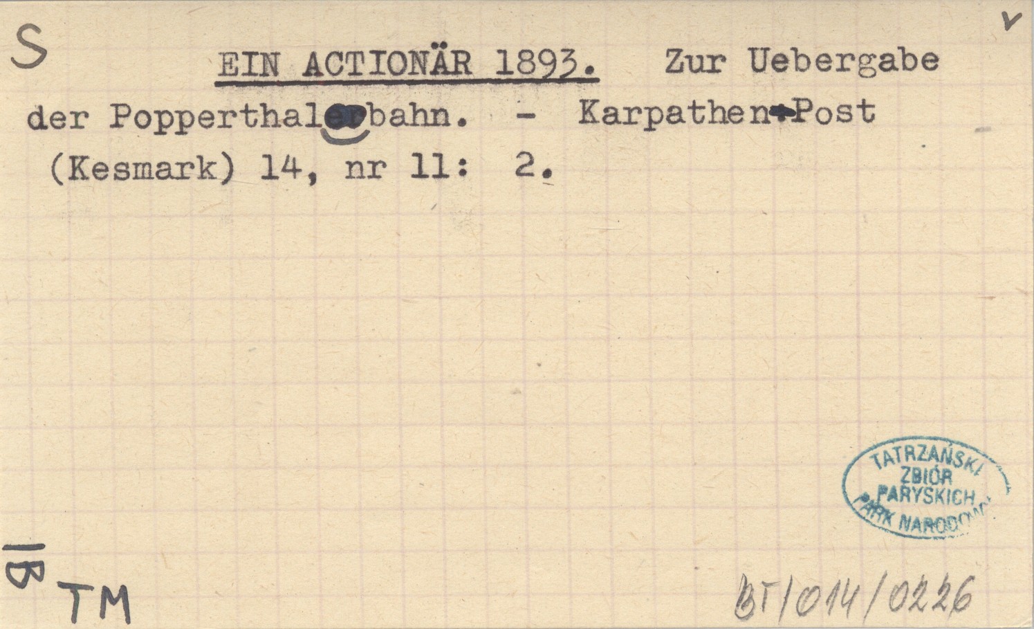 EIN ACTIONÄR 1893 Zur Uebergabe der Popperthalbahn.