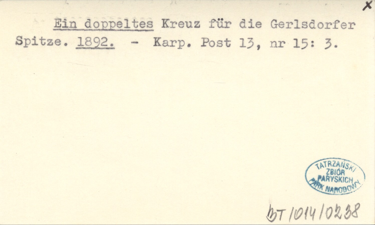 Ein doppeltes Kreuz für die Gerlsdorfer Spitze. 1892