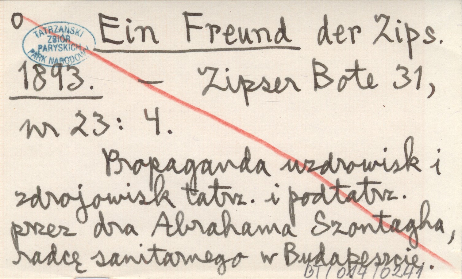 Zipser Bote, 31, nr 23: 4. Propaganda uzdrowisk i zdrojowisk tatrz. i podtatrz. przez dra Abrahama Szontagha, radcę sanitarnego w Budapeszcie.