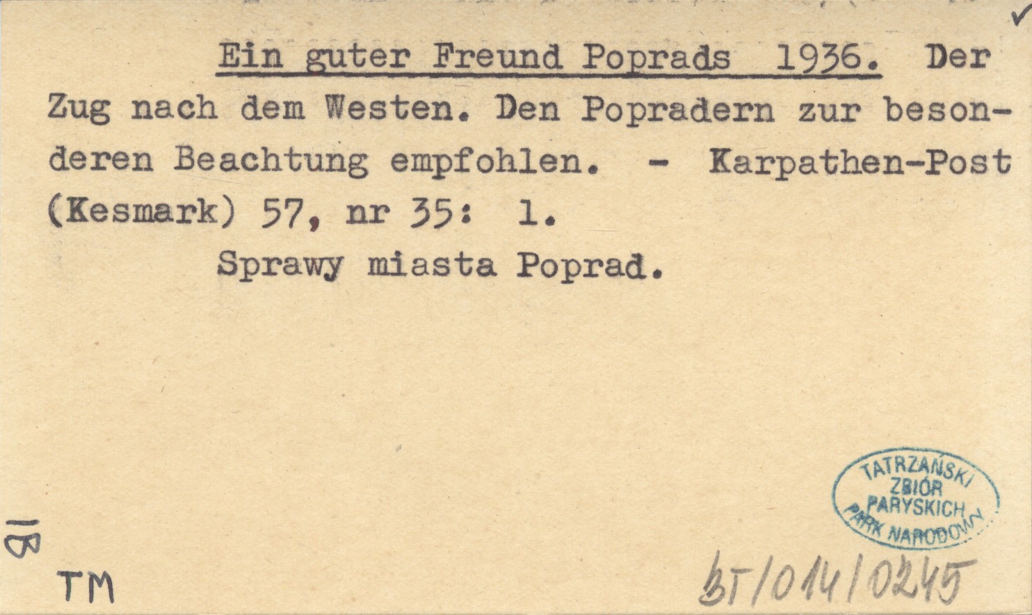 Ein guter Freund Poprads 1936 Der Zug nach dem Westen. Den Popradern zur besonderen Beachtung empfohlen.