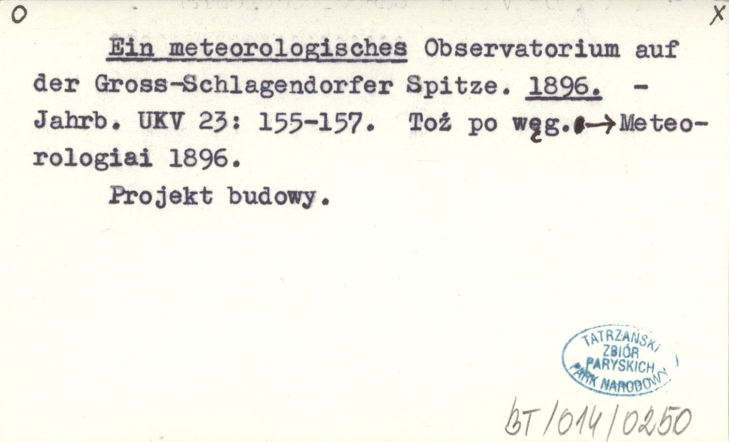 Jahrbuch des Ungarischen Karpathen-Vereines, 23: 155-157. Projekt budowy. Też po węg.: Meteorologiai 1896