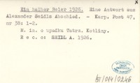 Ein halber Beler 1926 Eine Antwort aus Alexander Seidls Abschied.