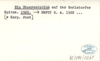 Ein Observatorium auf der Gerlsdorfer Spitze. 1922