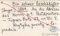 Ein schwer Geschädigter 1889 An die Adresse des Herrn p. t. Postdirectors.