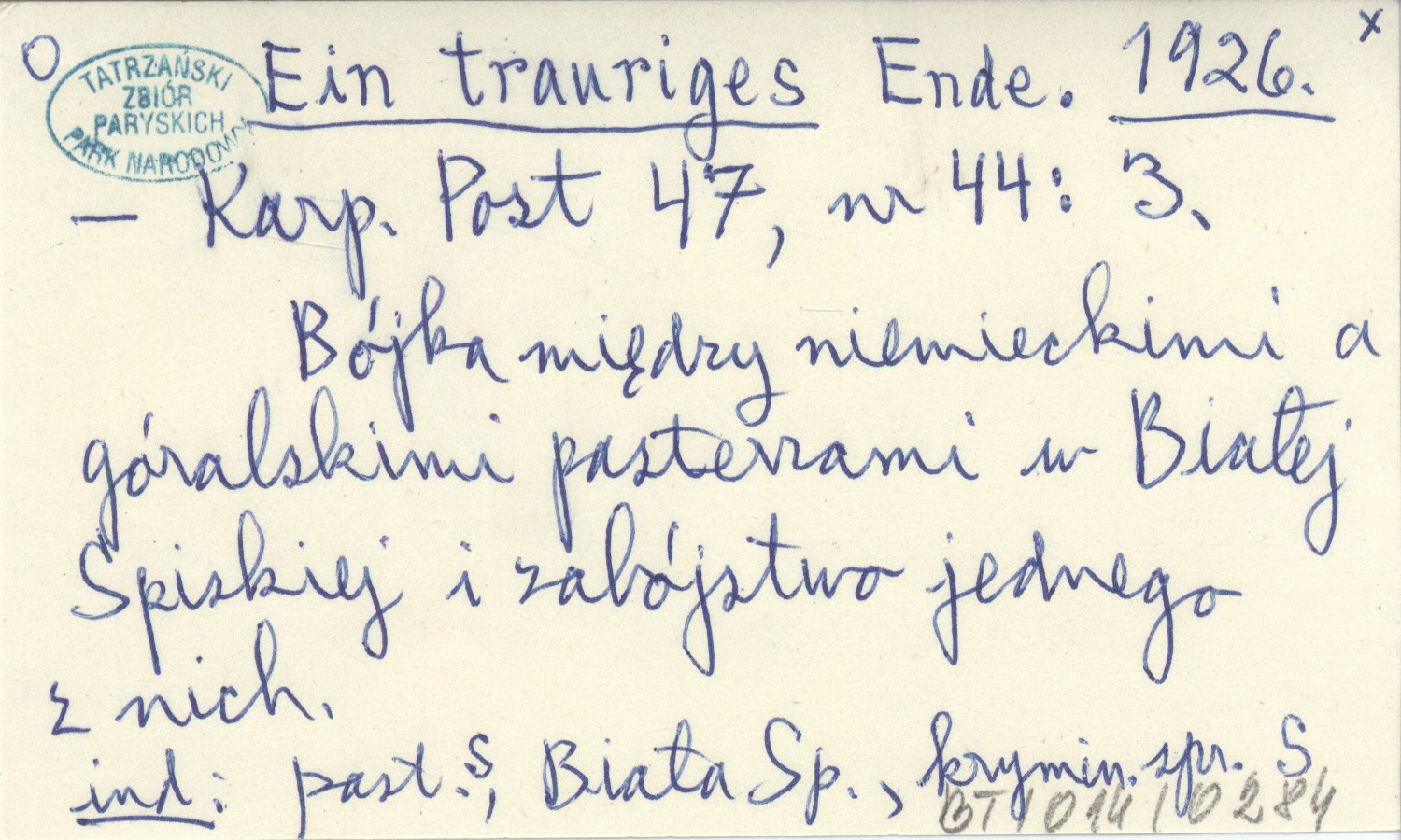 Projekt Digitalizacja fiszek z Bibliografią Tatr i Podtatrza Witolda Henryka Paryskiego jest finansowany ze środków Ministra Kultury i Dziedzictwa Narodowego oraz Tatrzańskiego Parku Narodowego.